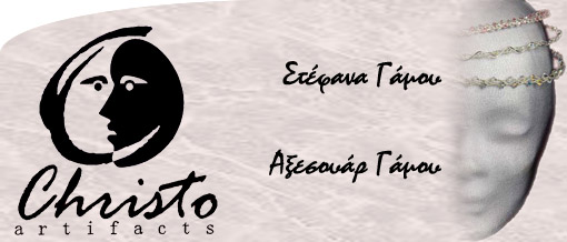 Το εργαστήριο αργυροχρυσοχοΐας Christo Artifacts, με την εικοσιπενταετή πείρα στην επεξεργασία ευγενών μετάλλων, παράγει μία μεγάλη ποικιλία σχεδίων σε στέφανα γάμου, ασημένια, επάργυρα, πορσελάνινα, καθώς και αξεσουάρ γάμου.